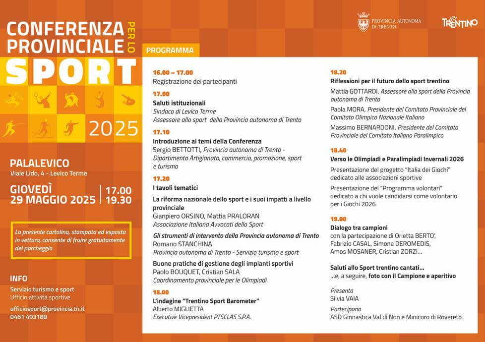 1 maggio, 09.30/17.00 – Verifiche sportive